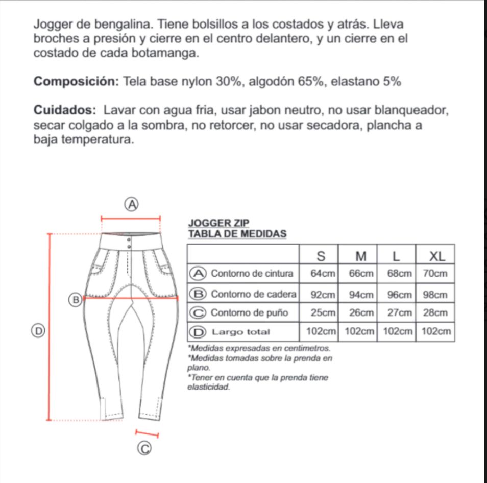 Jogger confeccionada en tela de bengalina con cierres en los costados en la parte de abajo del puño. Diseño versátil tanto para el día como para la noche.
